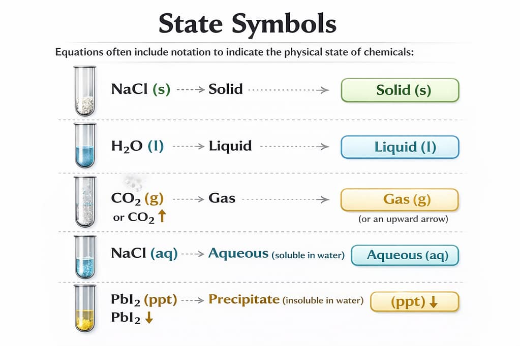 They make the chemical equation more clear and informative by showing the physical state of reactants and products. Understand State symbols with image 👇